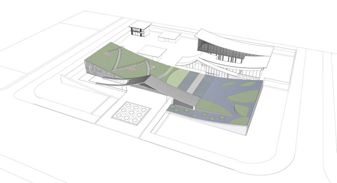 示范区的主体建筑,化用了中国传统屋檐元素,“人”字形的大坡屋顶前后交错,仿若起伏的山峦。